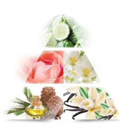 Your confidence will bloom with the floral symbol of femininity – a rose flower that charms with the delicate nature of its petals and expressive character. Along with this aroma, let yourself be carried away by the magic of softly enveloping creamy jasmine. At the end of this road, you will meet an elegant duet of sweet vanilla and white musk.