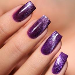 Cat Eye Max Futuristic purple. Gel Polish Cat Eye Max is a deep purple shade with a visible cat eye effect. The colour changes with light and creates a clear line on the nail. A great choice for bold and eye-catching manicures.