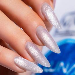 Gel Polish Moonlight is a luminous silver shade with a delicate glass-like effect. It reflects light beautifully, creating a soft, moonlit glow on the nails. Perfect for elegant looks, accents, or modern, minimalist manicures.