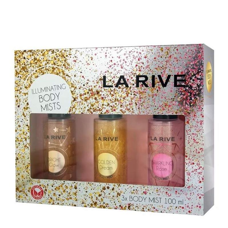 Indulge your senses with the Illuminating Body Mists Set from La Rive. This luxurious gift box contains three enchanting scents, each generously sized at 100 ml. With the Illuminating Body Mists Set, you can create a unique and refreshing fragrance experience that lasts all day. These lightweight and refreshing body mists are perfect for adding a touch of glamour to your daily routine. Use them after a shower or whenever you need a pick-me-up throughout the day. Simply spray a little on your body and let yourself be enveloped in a seductive scent that will leave you feeling emotional and confident. Whether you're heading to work, a festive event, or just want to pamper yourself, the Illuminating Body Mists Set will be your perfect companion. Give yourself or a special person in your life an unforgettable gift with this exclusive gift box from La Rive.