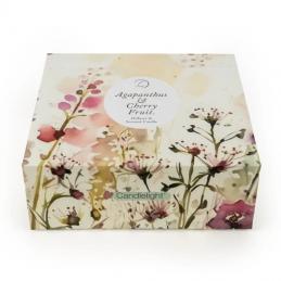 Delicate and uplifting, the Agapanthus & Cherry Fruit Gift Set blends soft florals with a touch of sweet red berries for a fresh, joyful aroma. The set includes a coordinated glass reed diffuser with natural sticks and a scented candle, both decorated with painterly agapanthus blooms in soft blush tones.