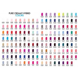 Creamy hybrid polishes Pure Creamy Hybrid – made using a modern, safe formulas which last up to 4 weeks. The colours of Pure hybrid polishes are created based on current trends and our cusomers’ needs to highlight their beautiful hands. 100% satisfaction after application of the first layer.