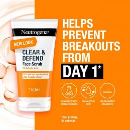 Neutrogena Clear & Defend Face Scrub is a smoothing exfoliating scrub designed to help prevent breakouts while gently exfoliating the skin.