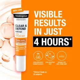 Neutrogena Clear & Defend SOS Gel is a fast-acting spot treatment designed to visibly reduce spots in as little as 4 hours.